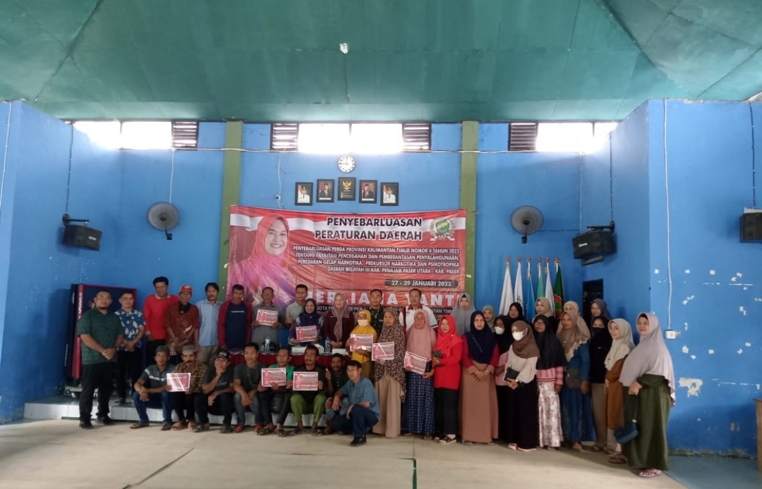 PENAJAM, kaltimonline.com – Anggota DPRD Kaltim Herliana Yanti mengajak masyarakat perangi narkoba dengan menggelar Penyebarluasan Peraturan Daerah (Perda) di Desa Labangka, Babulu, Penajam Paser Utara Minggu (29/1/2023).
