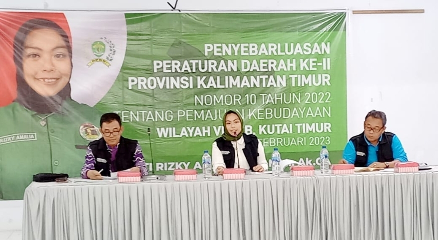 KUTAI TIMUR, kaltimonline.com – Dalam rangka memberikan pedoman landasan payung hukum berkesenian dan budaya, Anggota DPRD Provinsi Kaltim, Rizky Amalia menggelar giat sosialisasi secara langsung terkait penyebarluasan Peraturan Daerah (Perda) Provinsi Kaltim nomor 10 tahun 2022 tentang pemajuan kebudayaan.