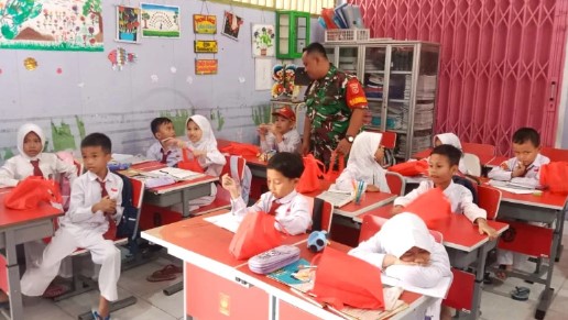 Babinsa Tenggarong Pantau Pembagian Takjil Bergizi di SDN 011 dan 018, Kutai Kartanegara