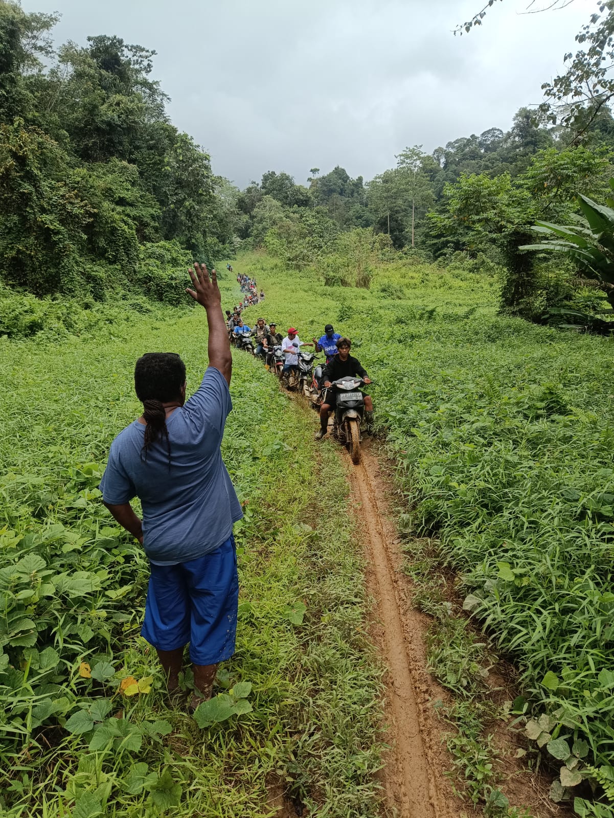Jidan, Ketua Adat Desa Mului, tak bisa menyembunyikan rasa harunya. “Terima kasih sudah nekat datang ke sini. Bapak-Ibu sendiri yang lihat, inilah keadaan kami. Jalan rusak, kami seperti terkurung,” katanya dengan mata berkaca-kaca.