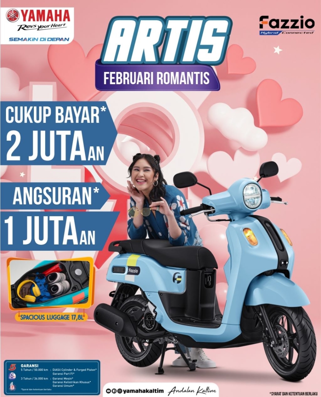 “Ya, buat seluruh Yamaha Lover yang ingin memiliki Fazzio, kali ini kami siapkan promo spesial “Artis” Februari Romantis,” kata Efendy Ariadi.