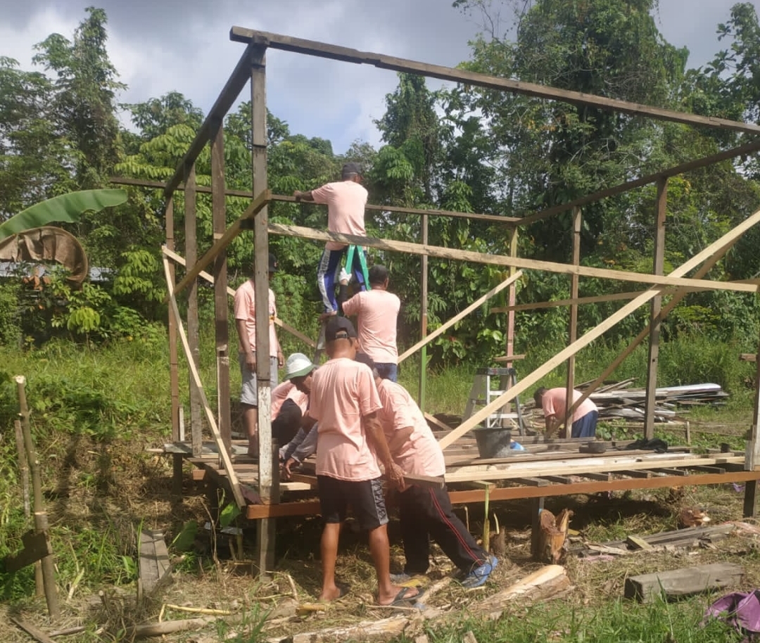 SAMARINDA, kaltimonline.com – Para sukarelawan dari Mak Ganjar Kaltim bersatu padu membantu bedah rumah untuk satu keluarga kurang mampu di Kelurahan Sungai Keledang, Kecamatan Samarinda, Kota Samarinda, Kalimantan Timur.