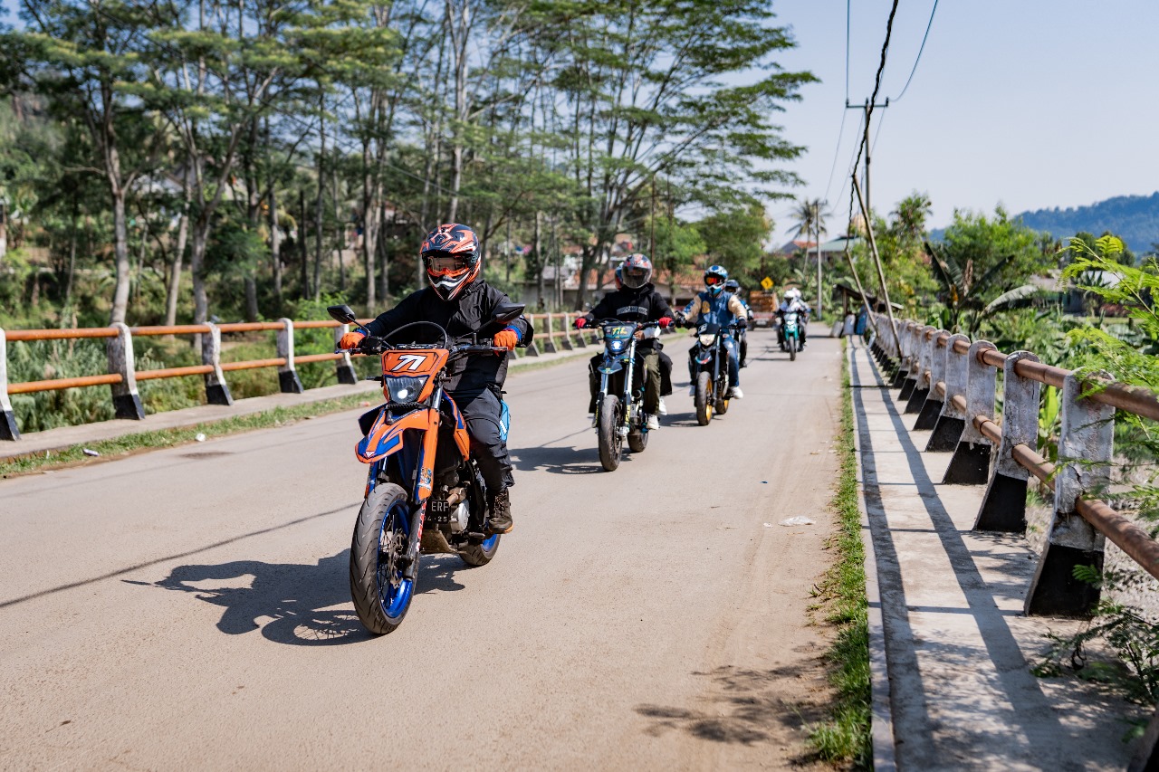 Setelah kurang lebih 1 jam mendengarkan pemaparan materi, para peserta kemudian langsung bergegas menuju motor mereka masing-masing untuk adakan sesi foto bersama terlebih dahulu lengkap dengan riding gear mereka sebelum full gaspol menuju Jonggol. Rute cross country yang melewati daerah perkampungan penduduk dengan kombinasi jalan berbatu dan berlubang serta tikungan tajam, tanjakan, dan turunan curam khas daerah perbukitan Bogor, menjadi suguhan utama Morning Ride kali ini.