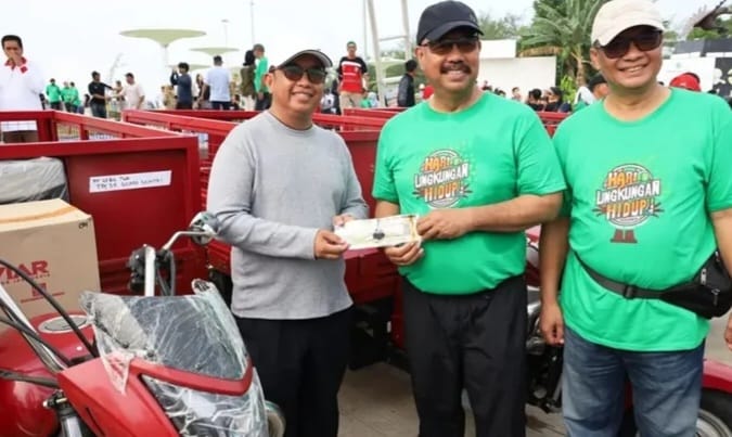 Ada juga kegiatan penanaman pohon serta ada penyerahan alat unit angkutan sampah ke pengelola bank sampah.