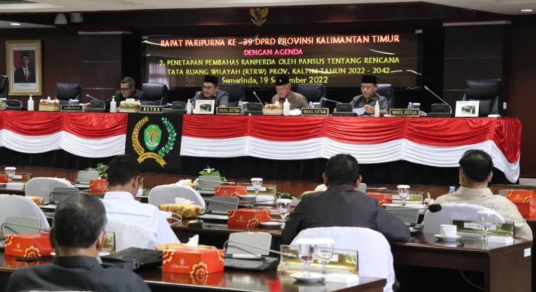 SAMARINDA, kaltimonline.com – DPRD Kaltim menggelar rapat paripurna ke -39 dengan agenda tanggapan dan atau jawaban Gubernur Kaltim terhadap penyampaian pandangan umum Fraksi – fraksi DPRD Kaltim atas Ranperda tentang Rencana Tata Ruang Wilayah (RTRW) Kaltim tahun 2022-2042 dan penetapan pembahas Ranperda oleh Pansus tentang RTRW Kaltim tahun 2022-2042.