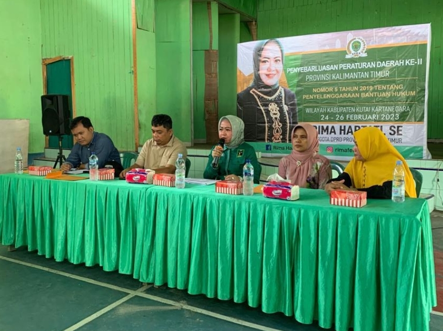 KUKAR, kaltimonline.com – Anggota DPRD Kaltim Rima Hartati gelar Sosialisasi Peraturan Daerah (Sosper) Nomor 5 Tahun 2019 tentang Penyelenggaraan Bantuan Hukum di Desa Anggana, Kecamatan Anggana, Kutai Kartanegara, pada Minggu (26/2/2023).