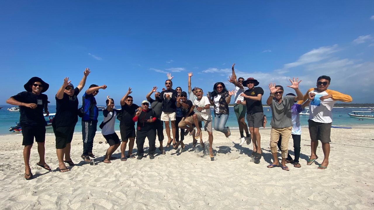 ‘Besok kita liburan dulu ya sebelum nonton balapan. Rileks. Siapkan pakaian yang mau snorkling. Jangan lupa bawa kacamata hitam. Charge hapenya buat foto-foto dan video,” kata Asisten Manajer PT. Surya Timur Sakti Jatim (STSJ) Main Dealer Yamaha Kalimantan, Efendy Ariadi, saat tiba di Bandara Internasional Lombok atau terkenal disebut BIL.