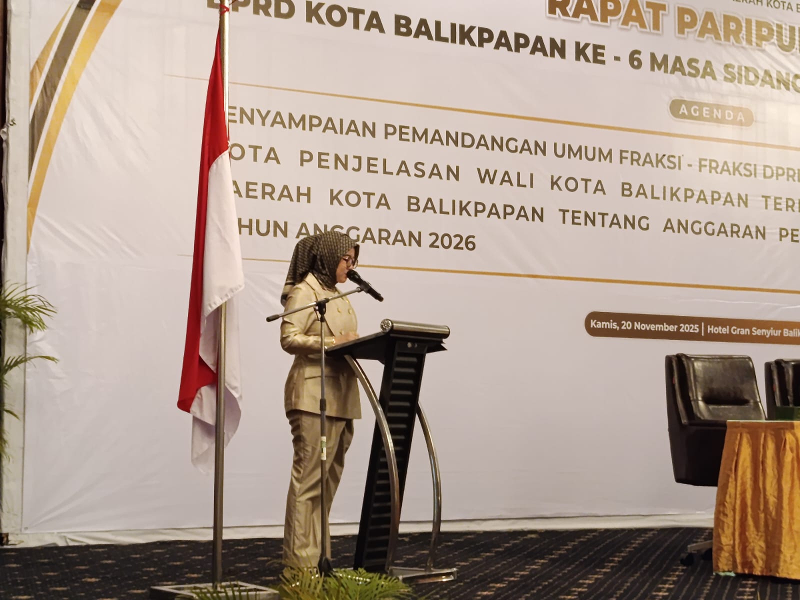 BALIKPAPAN — Sidang Paripurna DPRD Kota Balikpapan yang digelar pada Kamis (20/11/2025) di Hotel Grand Senyiur berlangsung dengan nuansa berbeda. Di tengah agenda penting mengenai pandangan umum Fraksi terhadap perubahan nota penjelasan APBD 2026, Fraksi NasDem mengawalinya dengan menyampaikan ungkapan duka yang mendalam atas musibah tenggelamnya sejumlah warga di kawasan Perumahan Grand City.
