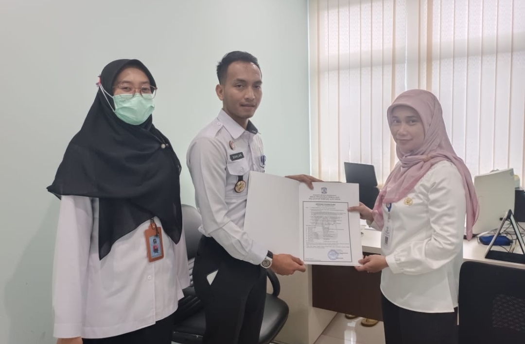 Serah terima Surat Keputusan Izin Perpanjangan Klinik diserahkan langsung oleh Perwakilan DPMPTSP kepada Kasubsi Pelayanan Tahanan, Dahlan Hidayat di Ruang Kantor DPMPTSP Kota Balikpapan. Rabu (5/4/2023).
