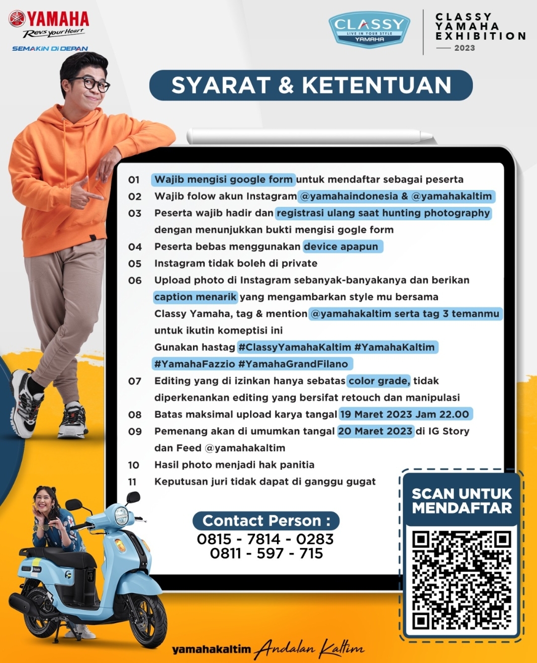 “Karena itu nanti kalian langsung daftar melalui barcode yang tersedia. Informasi lebih lanjut bisa kalian dapat di IG Yamaha Kaltim,” ungkap Efendy.